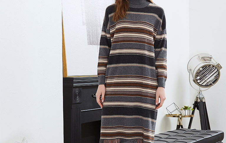 时尚简约的女士驼绒连衣裙不仅能打造时尚高雅气质,驼绒面料温暖舒适,手感绵软,营造出细腻的绒感。