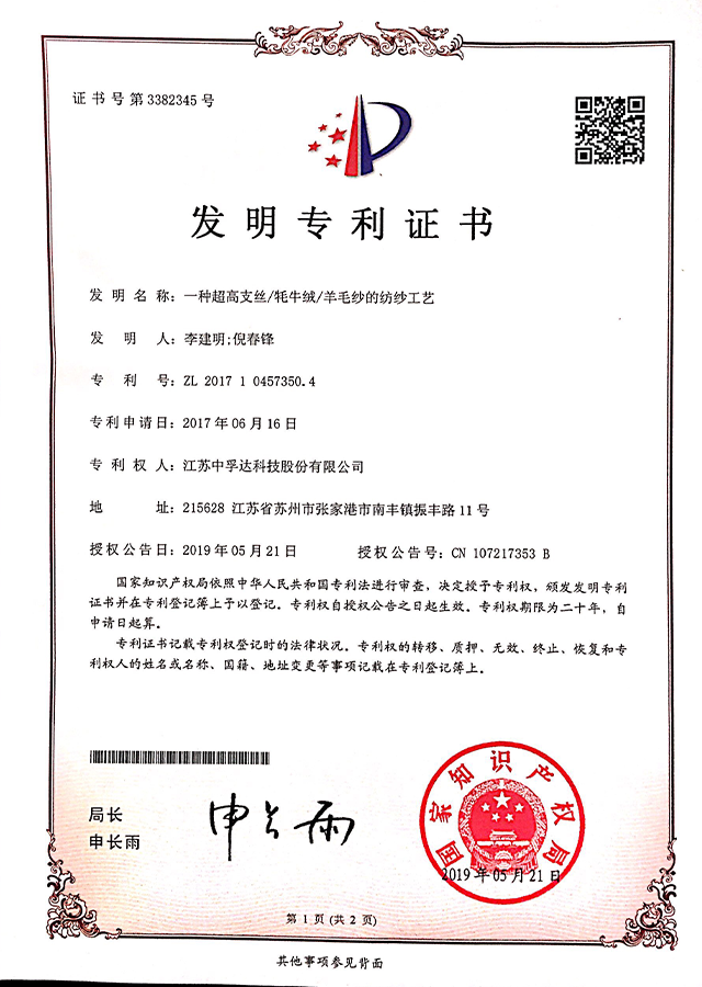 Through research and technological innovation, Chafta has reset the equipment system, changed the shape contraction rule of spinning "twisting triangle", creatively realized fiber agglomeration, increased the yarn strength by 20-30%, reduced the residual torque by 25-40%, and could meet the needs of the low-stress ultrafine fiber spinning of more than 100nm.